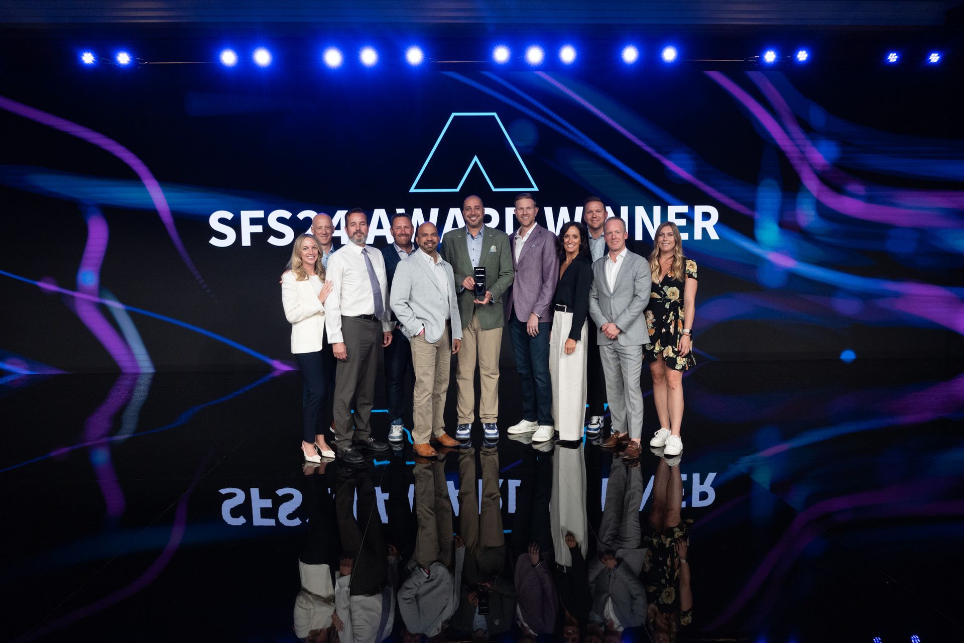 Doug Cardozo receiving a President's Club award on behalf of 3DG from Comcast in 2024