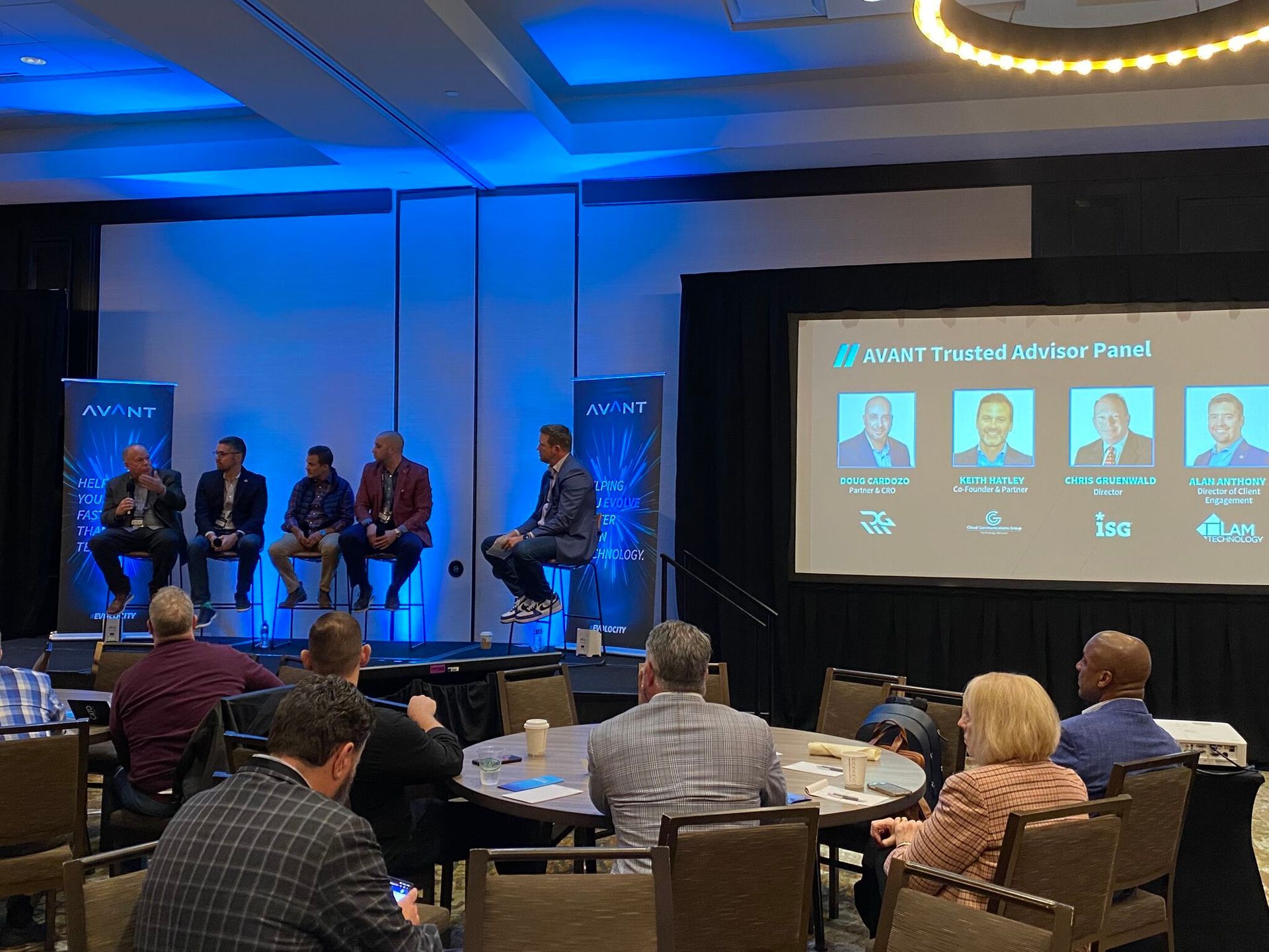 Doug Cardozo speaking on a trusted advisor panel at an Avant event in 2023